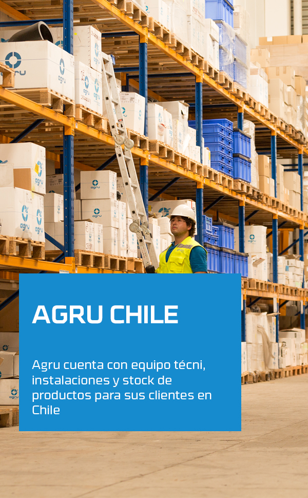 Dada la importancia y características socioeconómicas de Chile, que le permite ser uno de los países lideres en America Latina, AGRU decidió instalarse en territorio nacional en el año 2008, mediante una filial propia, por lo que le permite estar presente en el mercado nacional con instalaciones, bodega, equipo humano, de forma a permitir una mayor proximidad a sus clientes, calidad de servicio y rapidez de entrega al mercado.